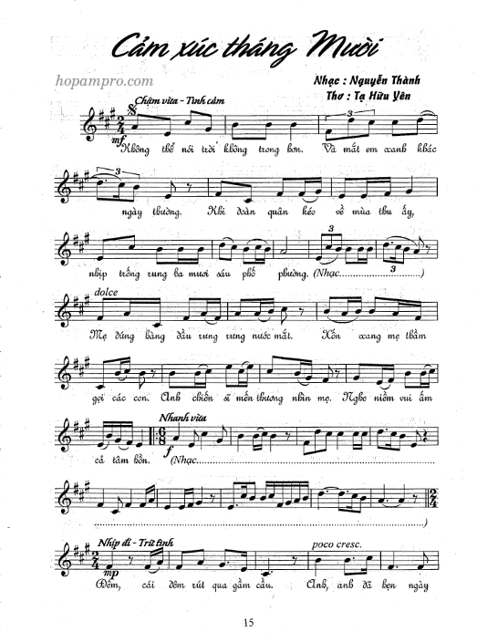 Sheet nhạc bài: CẢM XÚC THÁNG MƯỜI