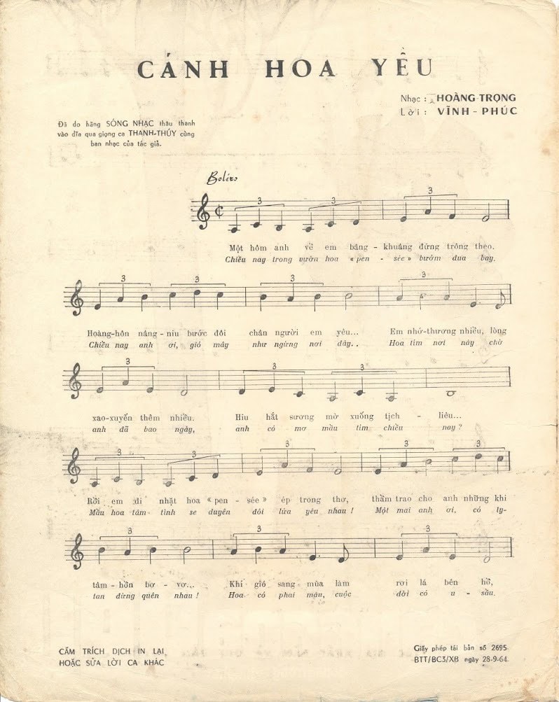 Sheet nhạc bài: CÁNH HOA YÊU