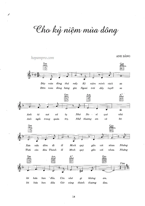 Sheet nhạc bài: CHO KỶ NIỆM MÙA ĐÔNG
