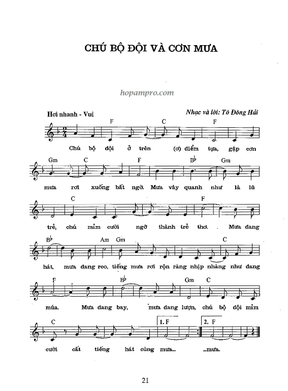 Sheet nhạc bài: CHÚ BỘ ĐỘI VÀ CƠN MƯA