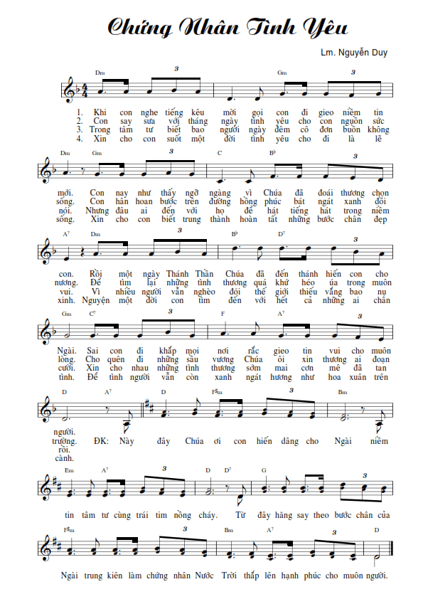 Sheet nhạc bài: CHỨNG NHÂN TÌNH YÊU