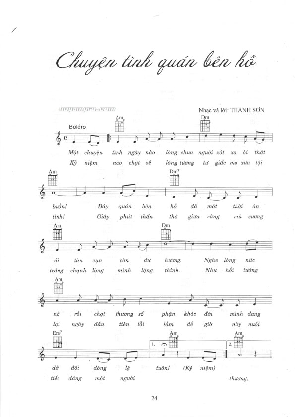 Sheet nhạc bài: CHUYỆN TÌNH QUÁN BÊN HỒ