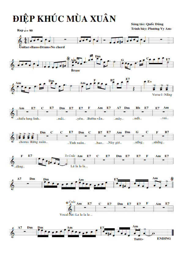 Sheet nhạc bài: ĐIỆP KHÚC MÙA XUÂN