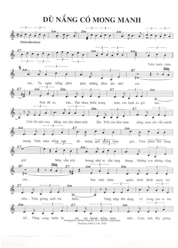 Sheet nhạc bài: DÙ NẮNG CÓ MONG MANH
