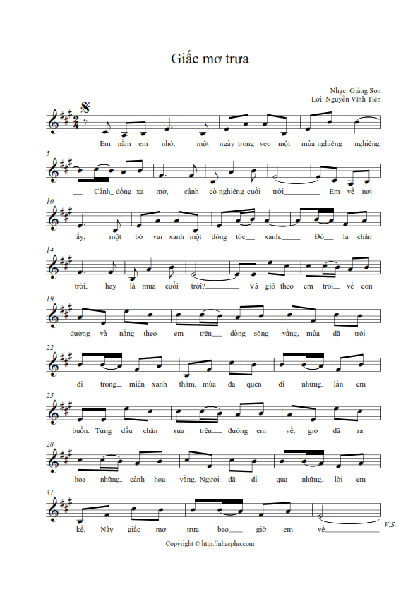 Sheet nhạc bài: GIẤC MƠ TRƯA