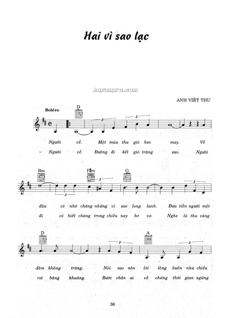 Sheet nhạc bài: HAI VÌ SAO LẠC