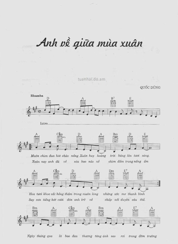 Sheet nhạc bài: ANH VỀ GIỮA MÙA XUÂN
