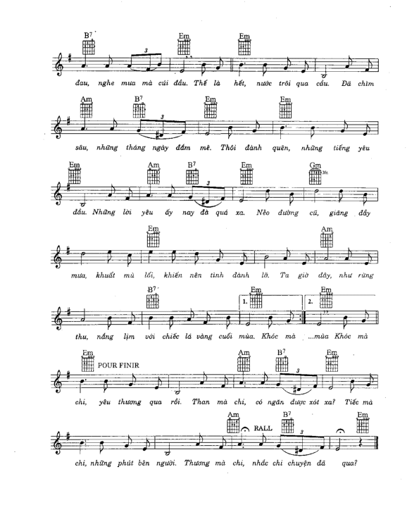 Sheet nhạc bài: CHO NGƯỜI TÌNH LỠ
