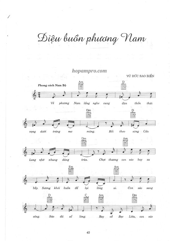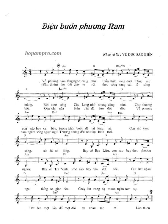 Sheet nhạc bài: ĐIỆU BUỒN PHƯƠNG NAM