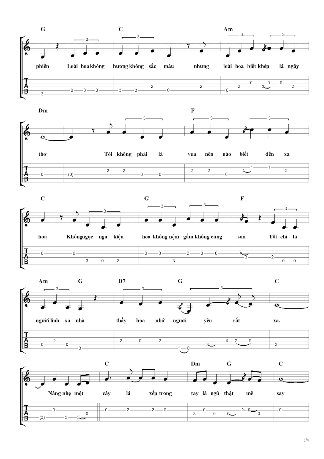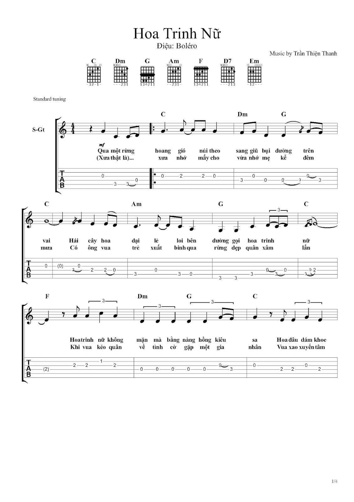 Sheet nhạc bài: HOA TRINH NỮ