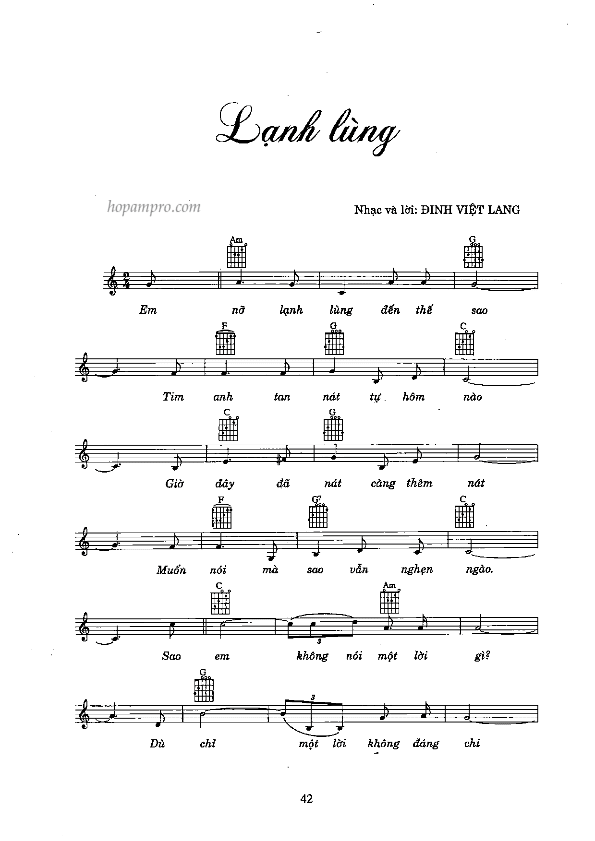 Sheet nhạc bài: LẠNH LÙNG