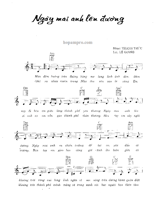 Sheet nhạc bài: NGÀY MAI ANH LÊN ĐƯỜNG