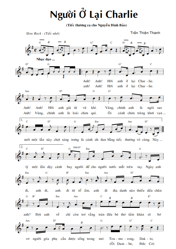 Sheet nhạc bài: NGƯỜI Ở LẠI CHARLIE
