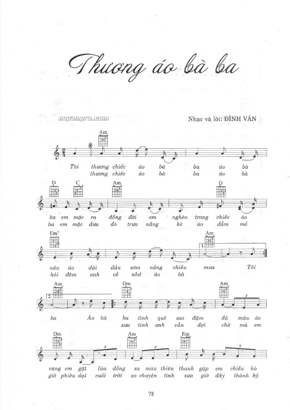 Sheet nhạc bài: THƯƠNG ÁO BÀ BA