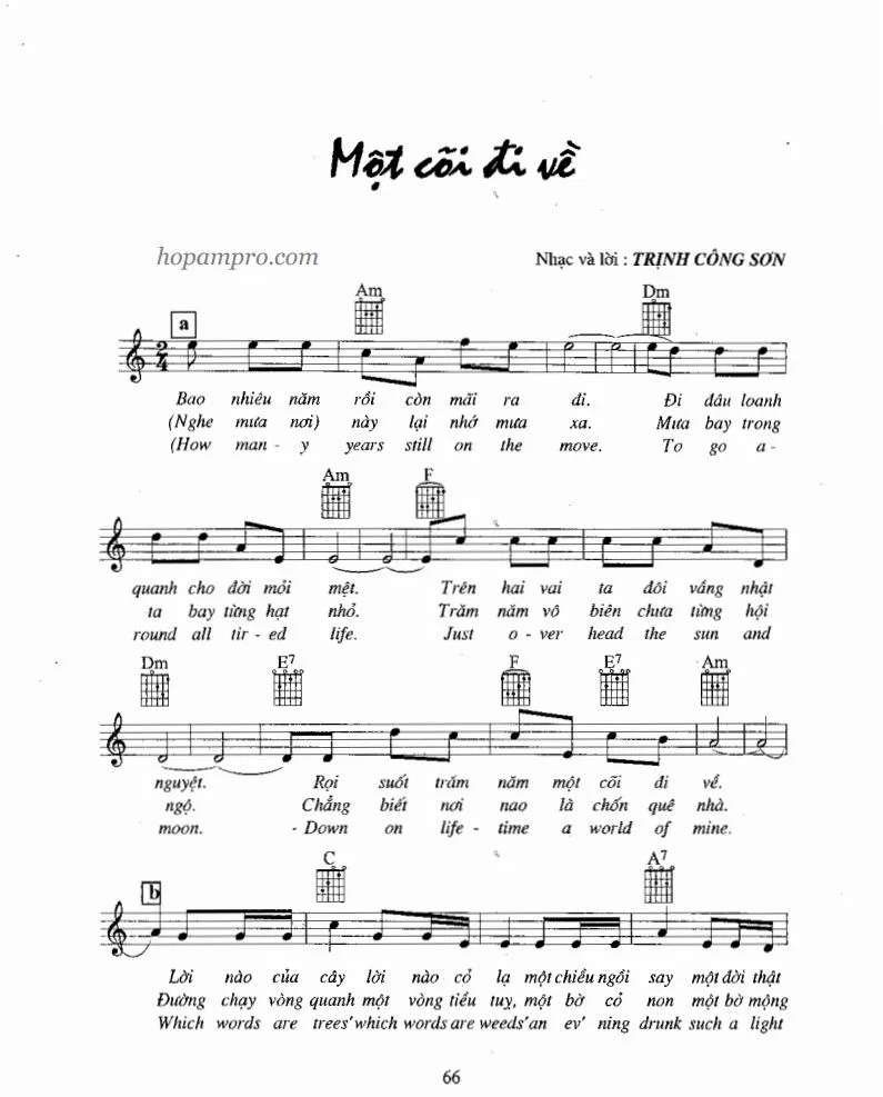 Sheet nhạc bài: MỘT CÕI ĐI VỀ