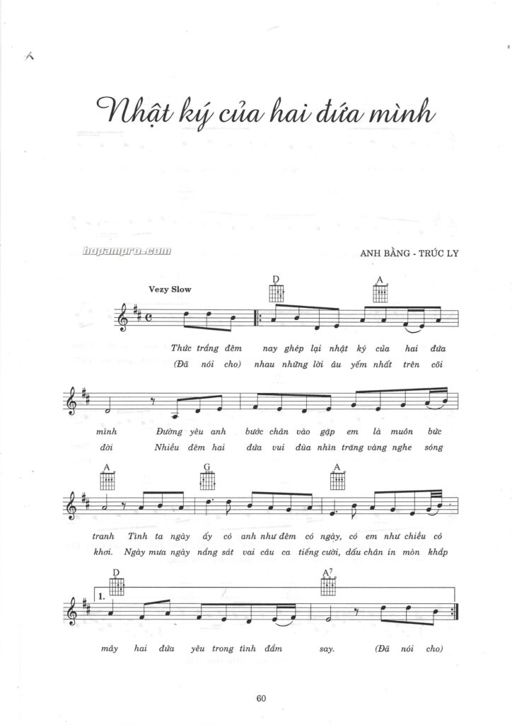 Sheet nhạc bài: NHẬT KÝ HAI ĐỨA MÌNH