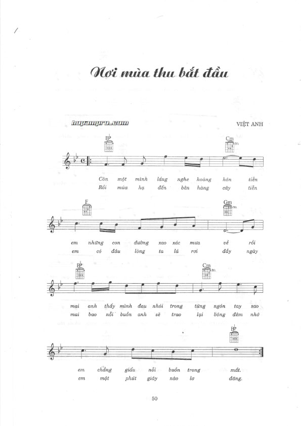 Sheet nhạc bài: NƠI MÙA THU BẮT ĐẦU