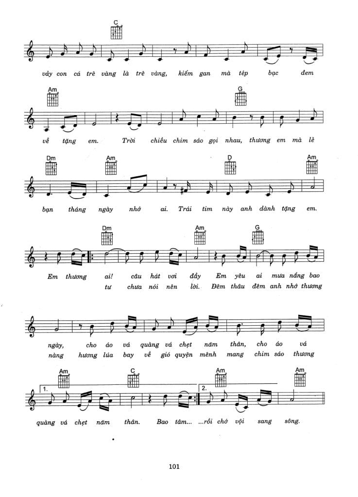 Sheet nhạc bài: THƯƠNG EM CÂU HÁT VÁ QUÀNG
