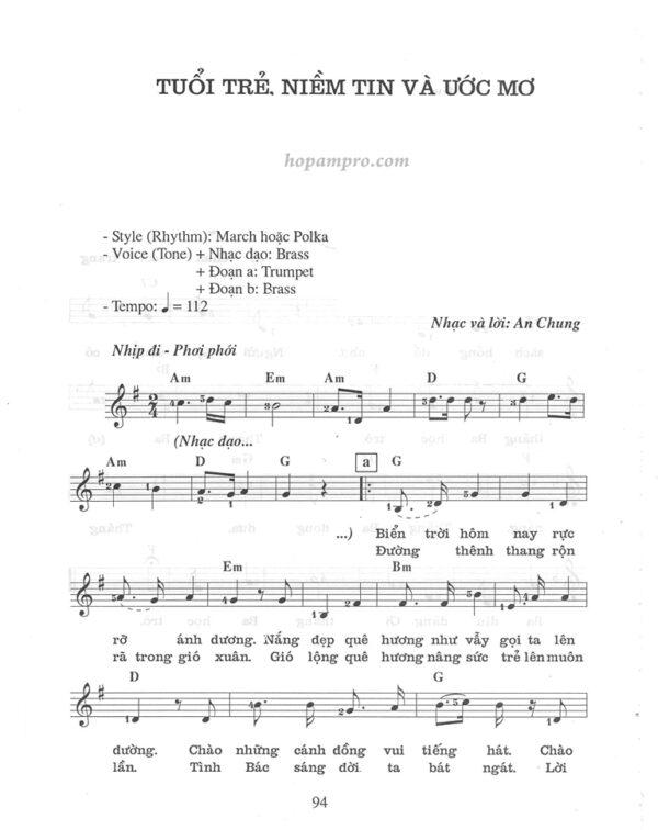 Sheet nhạc bài: TUỔI TRẺ NIỀM TIN VÀ ƯỚC MƠ