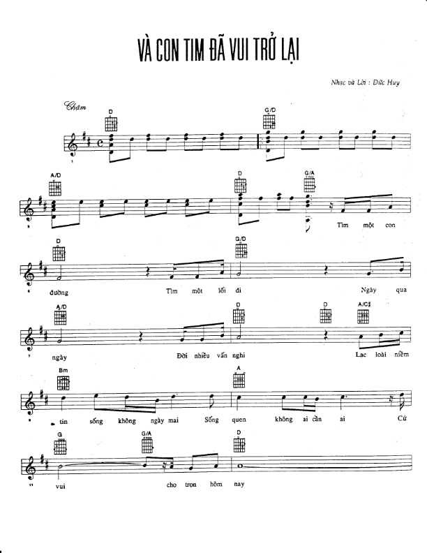Sheet nhạc bài: VÀ CON TIM ĐÃ VUI TRỞ LẠI