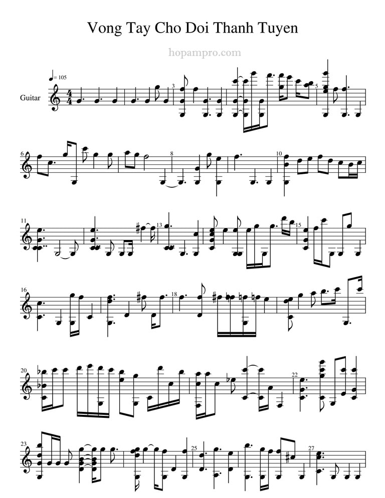 Sheet nhạc bài: VÒNG TAY CHO ĐỜI