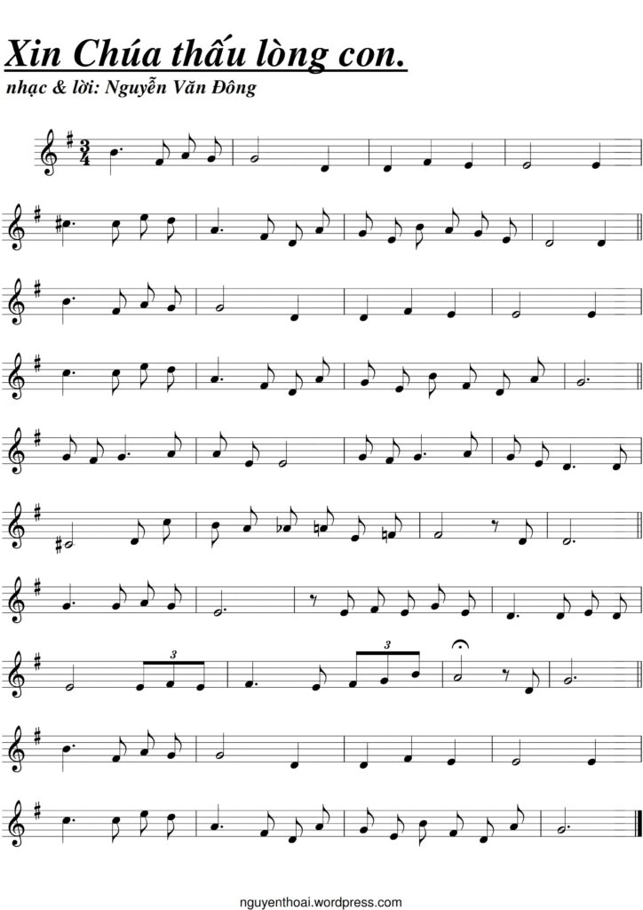 Sheet nhạc bài: XIN CHÚA THẤU LÒNG CON